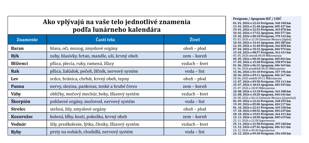 Lunárny kalendár je tým najlepším pomocníkom a radcom, kedy a ako sa starať o svoje zdravie, domácnosť či záhradu. Naučí vás, ako využívať silu Mesiaca vo svoj prospech. Týždňový stĺpcový kalendár obsahuje východy a západy Slnka a Mesiaca, znamenia zverokruhu a slovenské mená a sviatky.