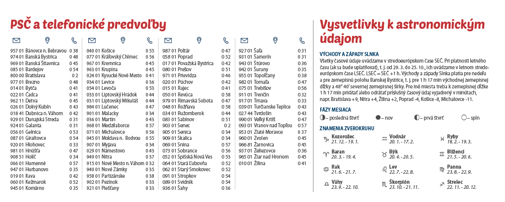 Ľudové zvyky a tradície sú naším národným pokladom. Zdedili sme ich po našich predkoch a mali by byť uchovávané z generácie na generáciu. Aby neostali zabudnuté, pripomíname si ich v originálnom rýdzo slovenskom kalendári Zvyky a tradície na Slovensku. Obsahuje dvojtýždňové riadkové kalendárium so slovenskými menami a sviatkami, východy a západy Slnka, fázy Mesiaca.